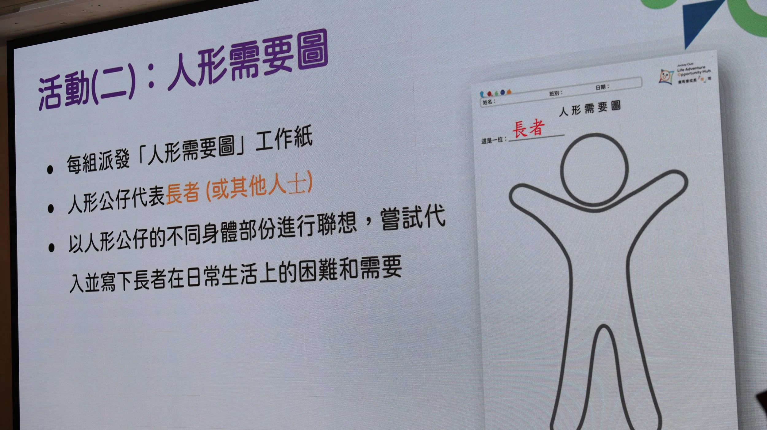 在這項活動中,我們將雙手反綁在背後,嘗試用不熟悉的方式書寫。簡單的書寫動作頓時變得異常困難,筆跡歪斜,甚至連握筆都成問題。這讓我們深刻體會到,當雙手靈活性受限時,日常生活中如進食、穿衣或使用電子設備等基本活動都會變得異常艱難。對於長者或手部行動不便的人士來說,這些挑戰可能伴隨每一天。