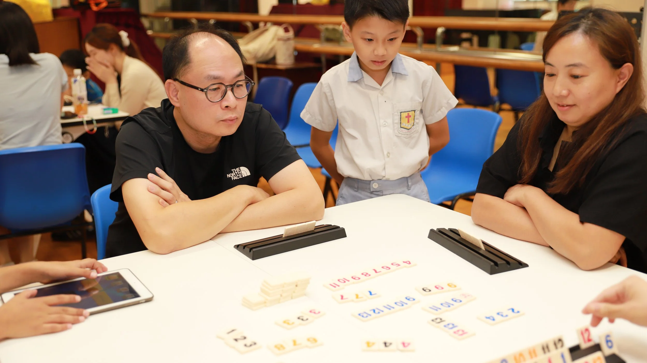 比賽當天,四個校社(信、望、愛、樂)各派出多位教師代表,展開了多場緊張刺激的Rummikub對決。比賽場地位於學校活動中心,現場氣氛熱烈,桌面上數字牌飛快移動,參賽者們聚精會神,時而陷入深思,時而快速出牌。觀賽的老師和學生為各自支持的校社加油助威,掌聲與歡呼聲此起彼落。