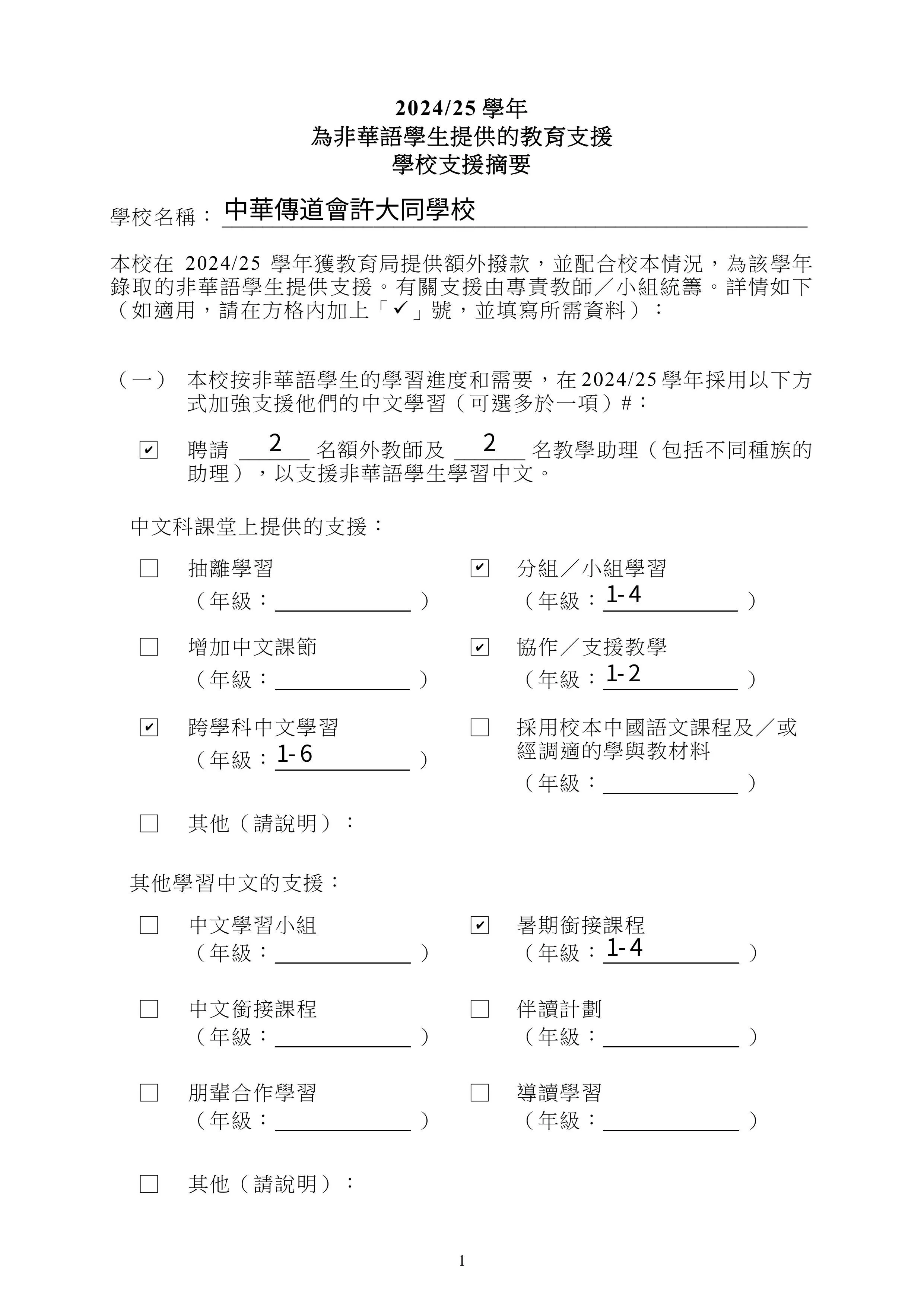 本校為非華語學生設立「增潤課程」,在下午啟能時段開設校本的支援課程,課程由本校中文老師製作,內容特別針對該級非華語學生的弱項,加以補強。